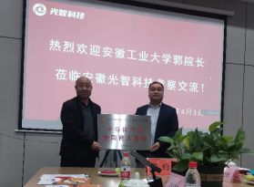 上午,在滁州市经信局和琅琊区相关部门领导的陪同下,学院一行来到安徽光智科技有限公司参观企业的工艺产线和检测实验室,听取企业产品研发和相关的技术积累。在随后的座谈会上,光智科技总经理刘留介绍了公司的发展历程、行业优势、产品规划及人才需求等情况。郭宏介绍了学校及学院的发展概况,希望双方能结合各自所长,在红外光学材料、镜头设计、激光晶体材料及钙钛矿太阳能薄膜电池技术等领域深入合作,推动技术研发及成果落地,同时在学生培养、实习实践和就业方面密切合作,实现高质量产教融合。双方还举行了“半导体产业协同育人基地”签约及授牌仪式,并商定尽快制定实施方案,共同推进具体工作落实到位。