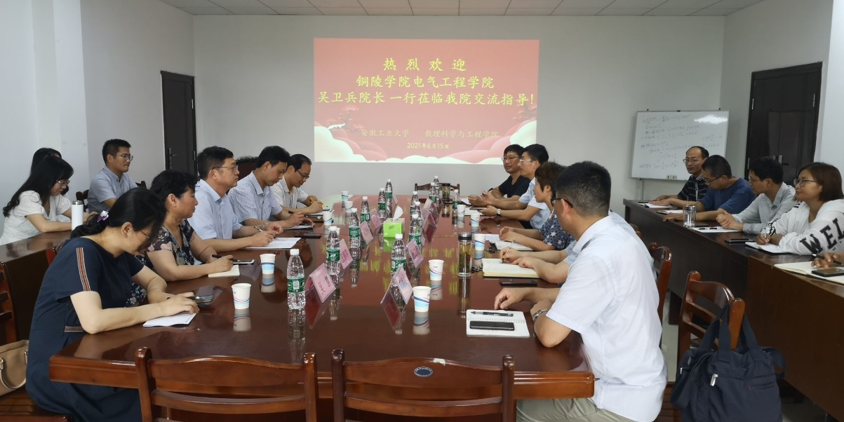 6月15日上午,铜陵学院电气工程学院院长吴卫兵和实践教学管理处处长王丽萍一行来数理科学与工程学院调研,调研座谈会由副院长李文喜主持。