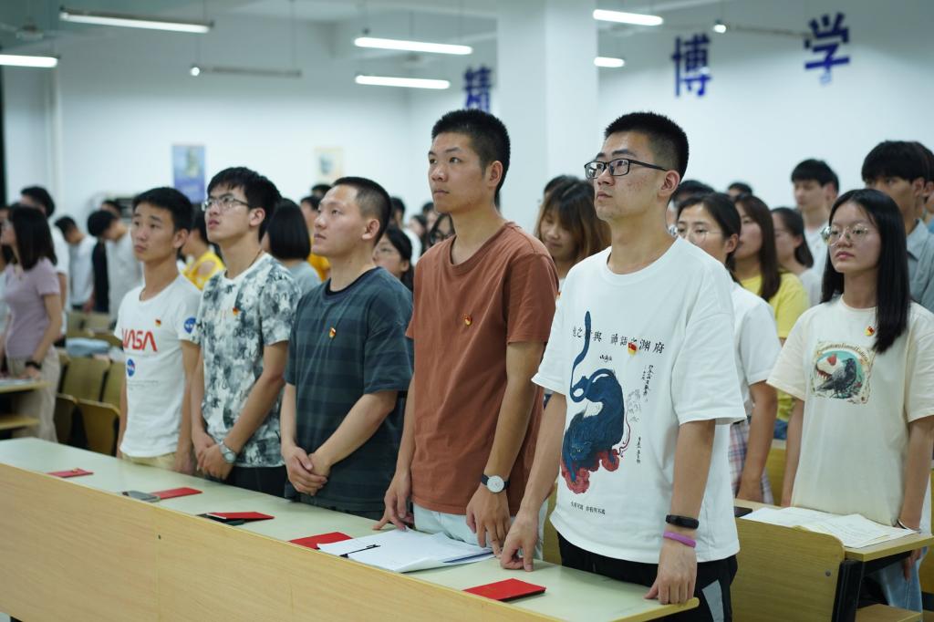 迎百年华诞,为信仰立誓。6月17日,数理学院在数理楼304为新发展的46名党员举行入党宣誓仪式。学院党委副书记郭宏、党委委员张涛、各学生支部书记及全体学生党员参加。