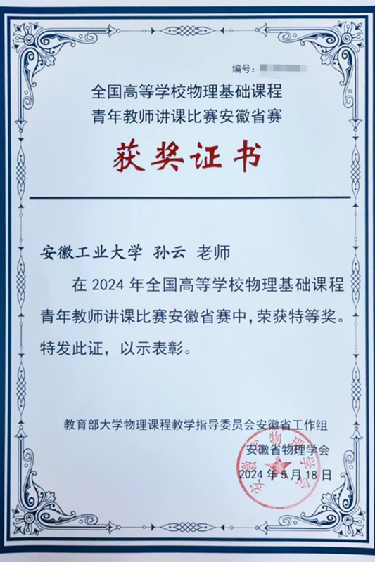 学校高度重视青年教师教学基本功训练,持续开展青年教师教学竞赛,以赛促学、以赛促教,鼓励和引导青年教师开展教学改革,提高教育教学水平。孙云教学思路清晰、教学设计巧妙、教态自然大方,并有机融入“课程思政”元素,充分展示了我校青年教师扎实的教学基本功和专业水平。学校将充分发挥本次比赛的激励作用,进一步提升数理公共课教学水平,为培养更多优秀工科人才奠定坚实基础。