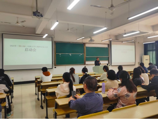 3月24日下午,2025年(第11届)全国大学生物理实验竞赛(CUPET)启动会在数理楼403室举行。大学物理部党支部书记孙文斌作赛事主题报告,副院长李勇分享评委经验,几十名师生参会。