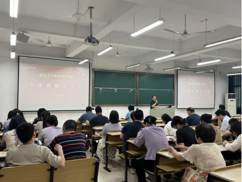 在数理楼403召开全院教职工大会。会议由学院党委书记汪春胜主持,全体教职工参加了会议。