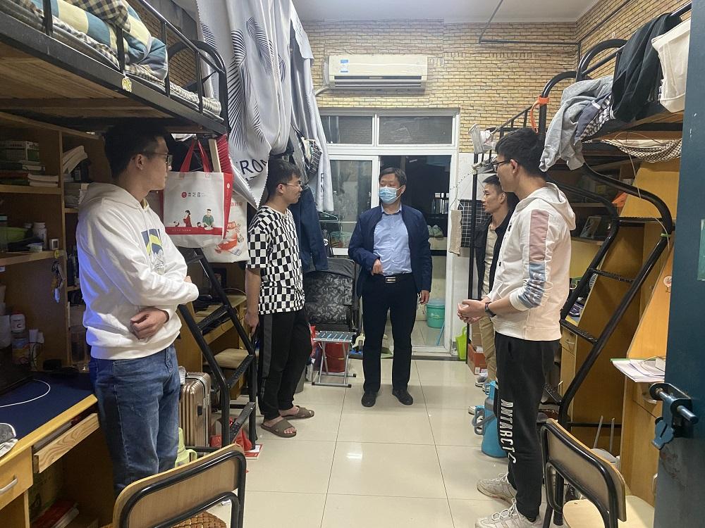 在宿舍与低年级学生交流时,黄仙山叮嘱学生,安心留在学校、配合做好疫情防控工作。他鼓励学生利用这段时间多学习、多锻炼身体,学院会尽心为同学们的学习和锻炼提供良好保障。同学们表示会严格遵守校园疫情防控规定,努力学习,加强锻炼。