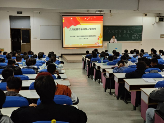 首先,由陈霞带领全体新生共同学习了党员发展的要求及原则,包括党员发展的主要依据、党员发展的重点和入党程序及要求等。她向新生们详细介绍了共青团组织推优条件和程序,入党积极分子、发展对象的确定方式及教育培训,预备党员的接收与转正等具体流程。她鼓励学生在校园生活中,要端正学习态度、认真刻苦完成学业,积极参加课内外活动,培养为他人服务意识、极高的团队精神和集体荣誉感。在校园生活中,除了完成专业课学习外,还要进一步提升理论学习的广度与深度,在思想上磨砺,在行动中体现,争取早日达到党员标准,成为一名光荣的共产党员。
