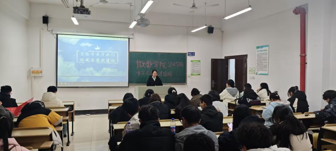 为充分发挥优秀学长学姐的榜样引领作用,帮助数学与应用数学专业25级新生明确学业方向,规划成长路径,12月29日晚,微数学院关工委联合学生工作办公室举办“唯实”学生成长成才论坛(第八期)。本次论坛特别邀请2022级数学与应用数学专业王武、晏萌萌担任主讲人,2025级数学专业新生全程参与,辅导员周文潇主持。