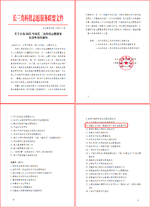 “数理行知”研究生科普团队凭借扎实的服务成效、创新的服务模式与突出的示范作用,获评“2025年度长三角优秀科技志愿服务组织”称号。